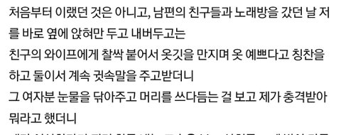 처음부터 이랬던 것은 아니고, 남편의 친구들과 노래방을 갔던 날 저를 바로 옆에 앉혀만 두고 내버두고는