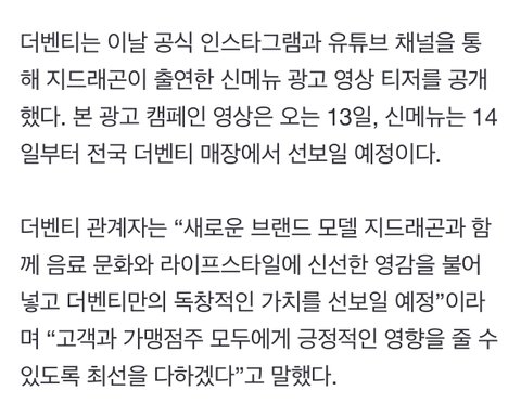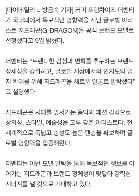 더벤티 원두가 맛있어서 내 원픽인데ㅋㅋ 지디가 모델됐다니까 좋다