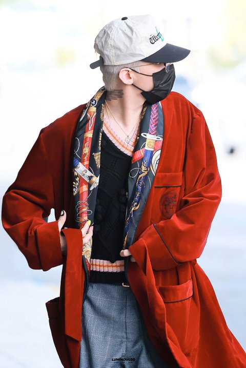 스카프에 이어 로브에 꽂힌 지용이라니...