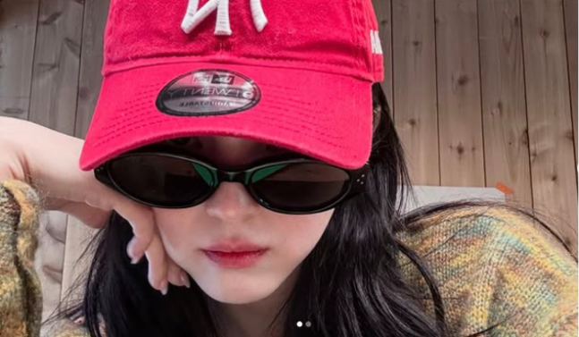한소희는 레드 볼캡을 깊게 눌러쓴 채 포즈를 취하고 있다. 사진=한소희 SNS