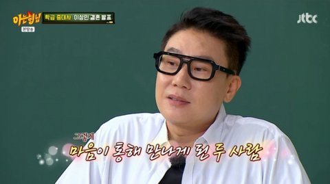 이어 "그때 휴대전화를 보다가 우연히 지금의 아내에게 전화했다. 아내가 전화를 잘 받아줬다. 다음날 아내가 먼저 연락을 또 해줬고 마음이 통해 만나게 됐다"고 덧붙였다. 이때 강호동은 아는 형님 국제 커플 편에서 미래의 배우자에게 적은 이상민의 시를 언급하기도 했다.