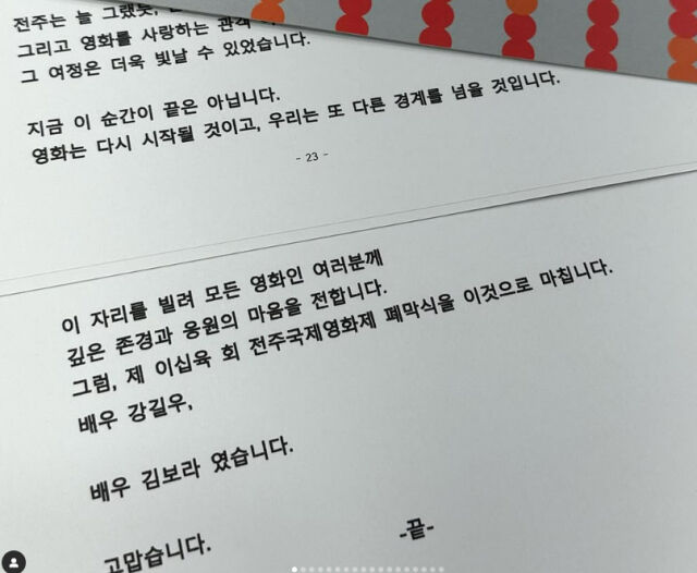 그는 10일 개인 계정에 전주국제영화제의 폐막식 사회자로 활약한 자신의 모습을 공유했다.