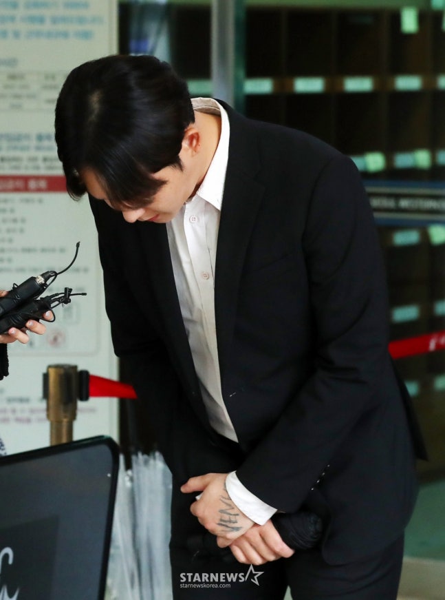마약류 관리에 관한 법률 위반(향정) 혐의를 받고 있는 가수 남태현이 19일 오전 서울 마포구 서부지방법원에서 진행된 첫 공판 기일에 출석하고 있다. 2023.10.19 /사진=김창현