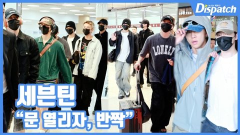 '세븐틴(Seventeen)' 에스쿱스, 조슈아, 준, 디에잇, 민규, 도겸, 승관, 디노가 입국장을 나서는 순간, 남다른 아우라를 발산했다.