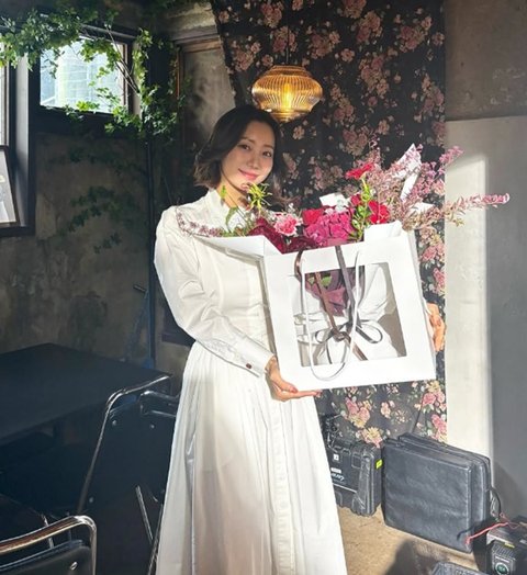 공개된 사진에는 커다란 꽃다발을 들고 있는 한그루의 모습이 담겼다.