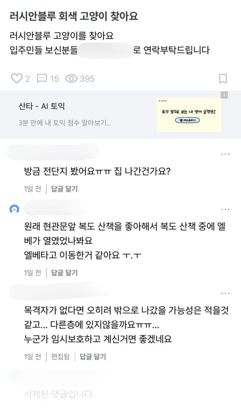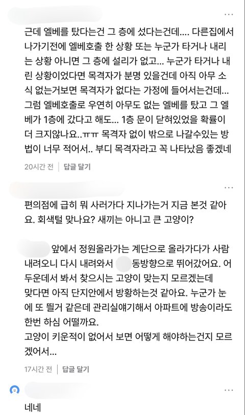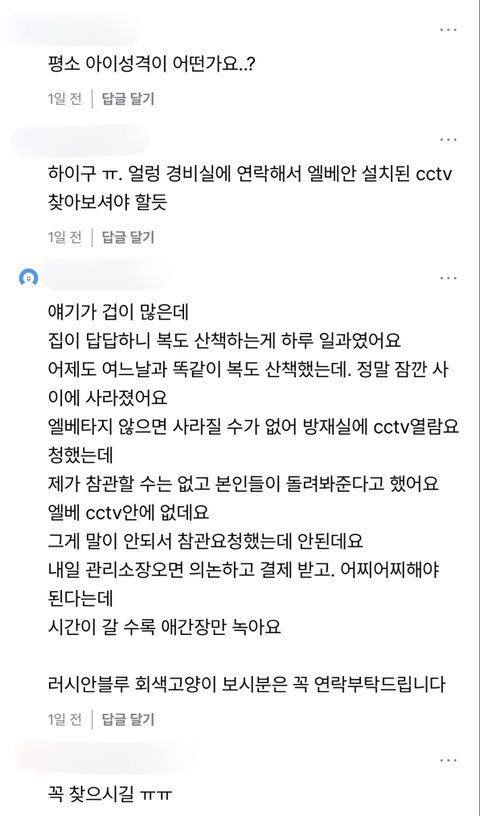 우리 고양이도 가끔 현관밖에 궁금해서 킁킁거리면서 나와볼때있는데 내가 불안해서 다섯발?도 못기다리고 도로 들어가라고 난리침ㅜㅜ 강아지처럼 산책연습도 안되어있고 갑자기 놀래서 계단이든 어디로든 튀어나갈까봐 완전 조마조마하던데; 무슨 깡으로 복도산책시키고 심지어 지켜보지도 않았는지 내기준 이해안됨 에휴