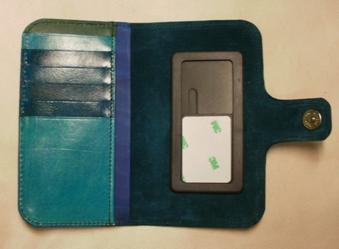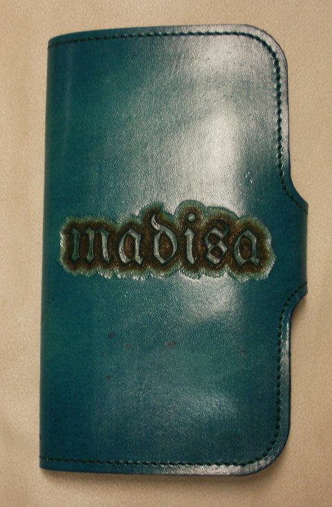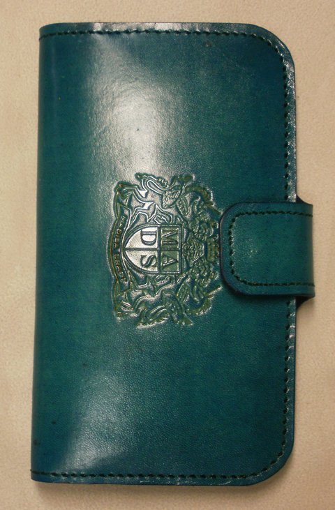 베지터블 내추럴 가죽에 천연 염색하고 슬라이더를 부착하여 제작한 폴더형 폰케이스입니다.(마디샤)
