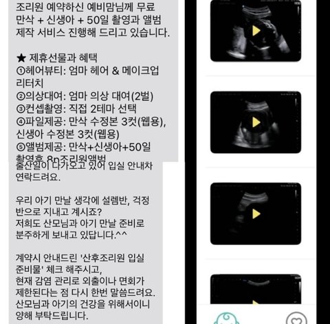 세상에 미친놈이 종종 있어요ㅋㅋ 주작은 절대 아니여서 다들 남자 잘 보고 만나시라고 재가 산후조리원이랑 만삭촬영하는곳에서 받은 안내문자 마미톡 초음파 캡처본 올립니다