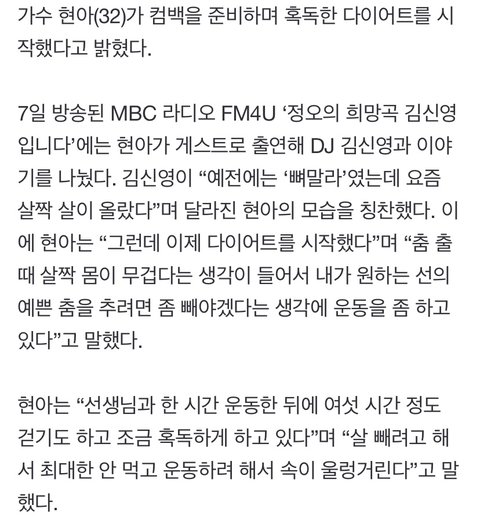 정작 저 시절 현아는 섹시+건강 아이콘이었음.‘적당히’마른 겅강한 그런 몸.