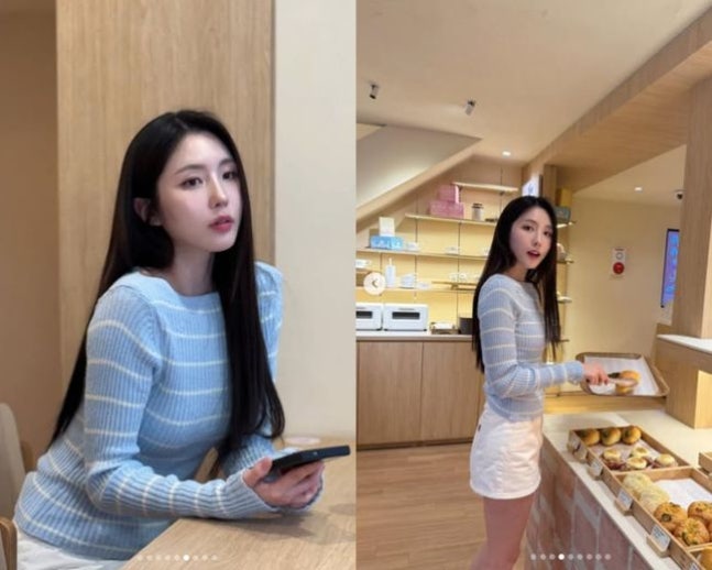 사진 속 성해은은 하늘색 상의에 초미니스커트를 입고 캐주얼룩을 선보였다. 그는 긴 생머리를 늘어트린 채 다양한 포즈를 취한 모습. 어떠한 각도에서도 굴욕없는 미모를 자랑했다.