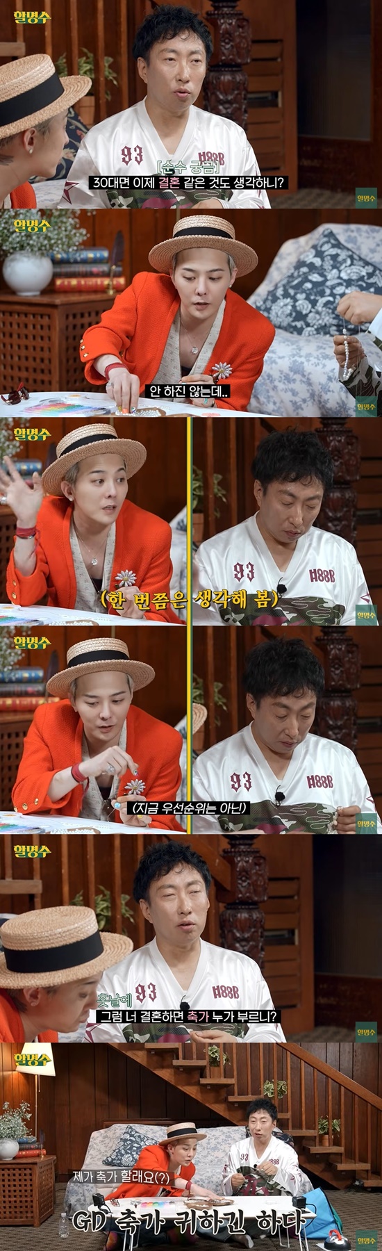 지드래곤은 "안 하진 않는데 당연히 결혼에 대한 생각이 있다. 아직 결혼에 대해서 크게 (생각하진 않는다)"고 솔직하게 밝혔다.
