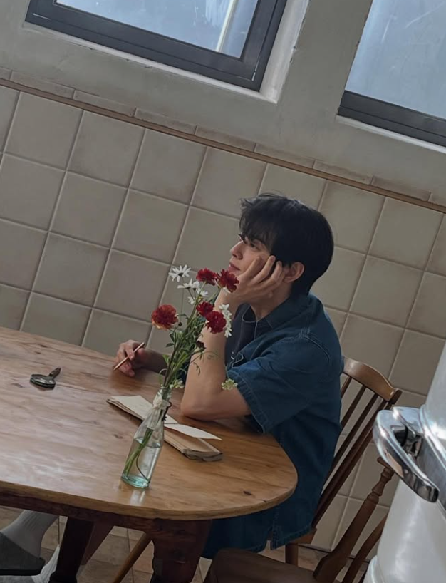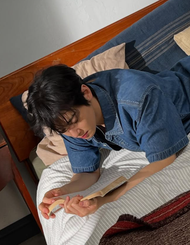 공개된 사진에는 차은우가 반팔 이너에 반팔 청셔츠를 걸치고 침대에 누워 포즈를 취하는 모습이 담겼다.