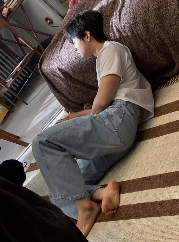 또 다른 사진에서는 책상에 앉거나 침대에 기대어 누운 포즈로 자연스러운 무드를 연출했다. 흰 반팔 상의에 청바지 조합으로 정석인 조합에서도 남다른 미모가 시선을 사로잡는다.
