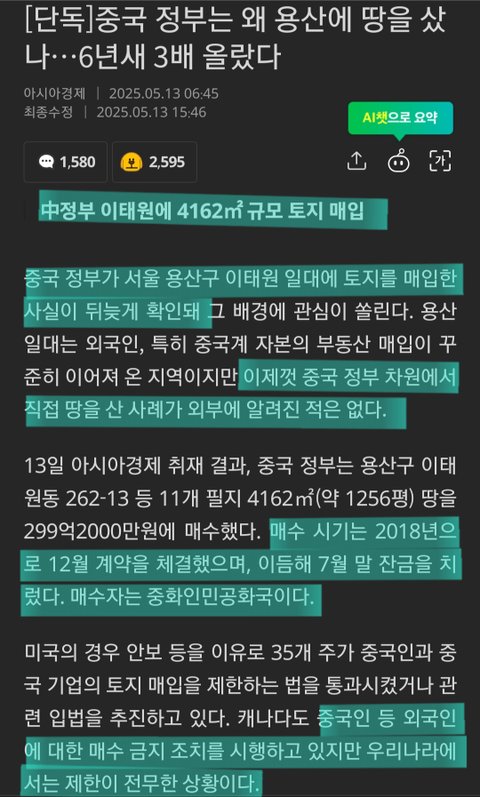 근데 중국인이랑 중국정부는 한국에서 땅 살수있음