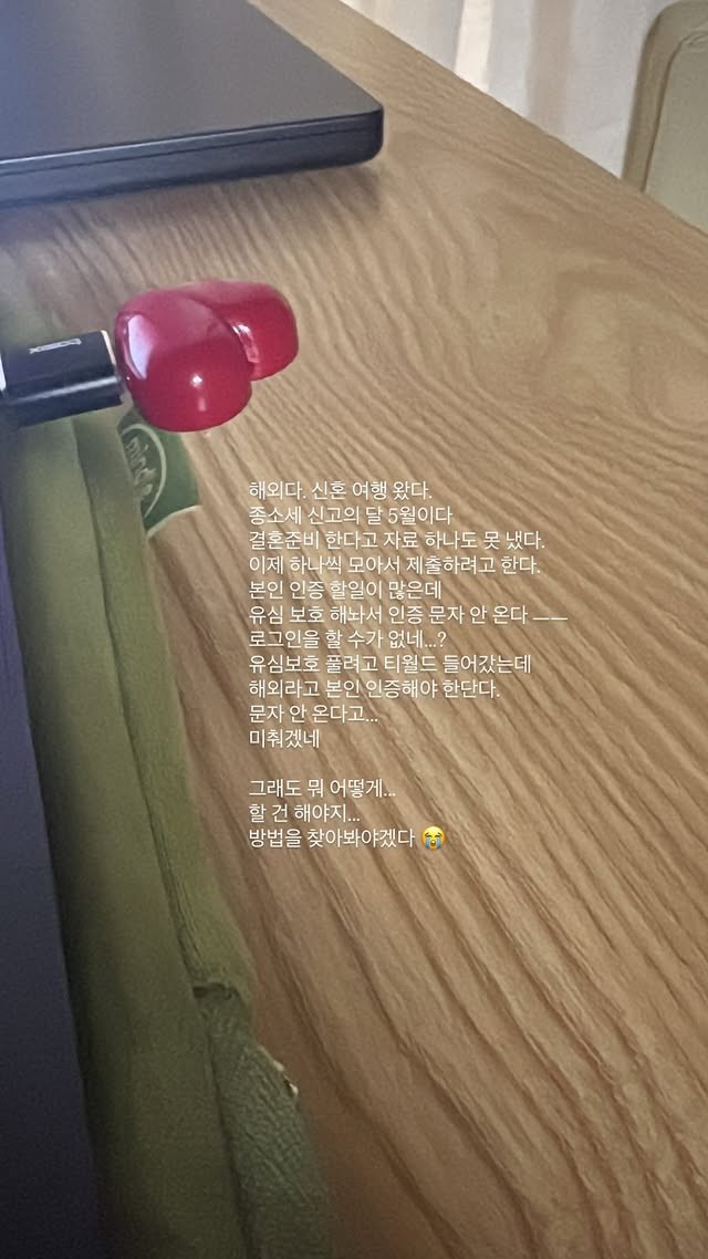 이어 "로그인을 할 수가 없네? 유심 보호 풀려고 티월드 들어갔는데 해외라고 본인 인증해야 한단다. 문자 안 온다고 미치겠네. 그래도 뭐 어떻게 할 건 해야지 방법을 찾아봐야겠다.