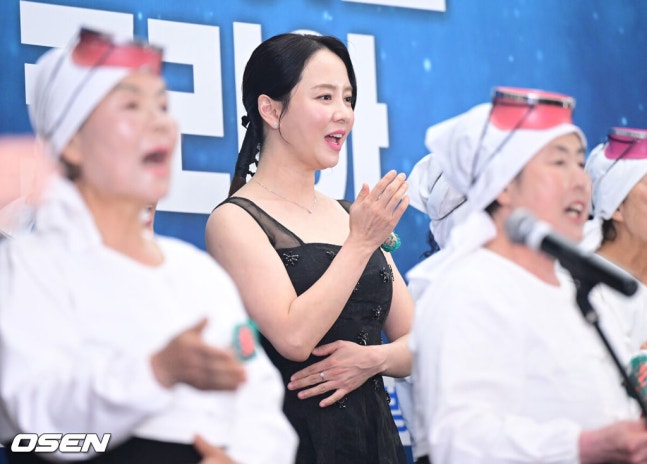 [OSEN=최규한 기자] 15일 오후 서울 상암동 스텐포드 호텔에서 JTBC 신규 프로그램 ‘딥 다이브 코리아: 송지효의 해녀 모험’(약칭 딥다이브) 제작발표회가 열렸다.딥다이브는 송지효가 제주에서 해녀 물질에 도전하고 그들과 진정한 유대감을 형성해 나가는 여정을 그린 다큐멘터리 프로그램이다. JTBC와 BBC 스튜디오의 첫 공동 제작 콘텐트이자 국내 방송사 중 최초로 BBC 스튜디오와 공동 제작한 사례로 많은 이들의 주목을 받고 있다.배우 송지효가 하도 해녀 합창단과 공연을 펼치고 있다. 2025.05.15 / dreamer@osen.co.kr