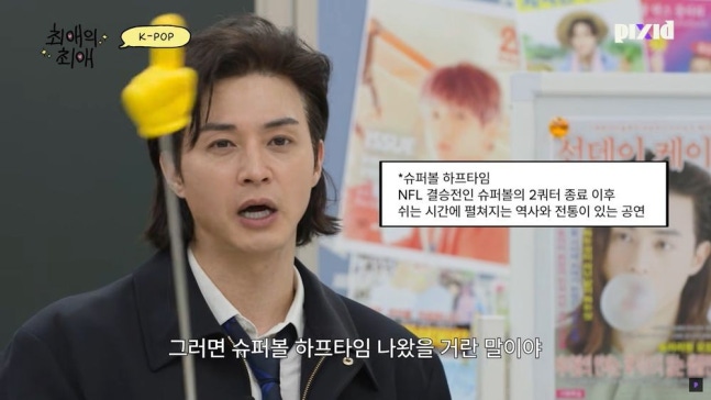 김지훈은 "정국 솔로곡 'Standing Next to You'가 어셔랑 함께해서 찢었다. 근데 그때 군대를 가버렸다"라며 "아마 군대 안 갔으면 슈퍼볼 하프타임에 나왔을 텐데 그게 너무 아쉽다"라며 슬퍼했다.