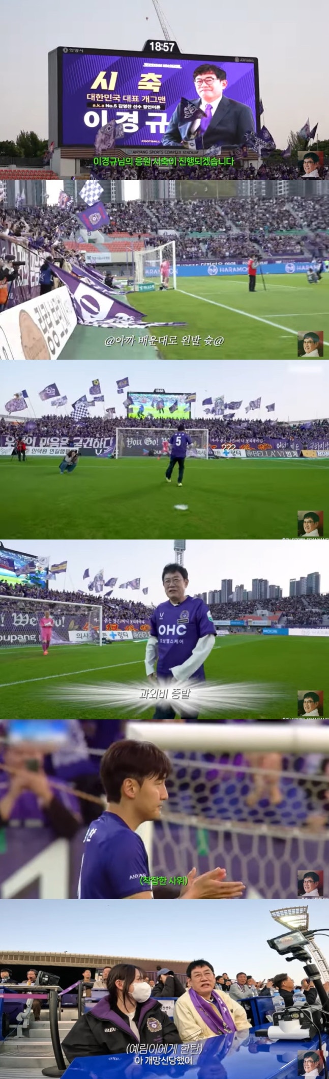 이경규는 시축 전 "안양의 영원한 팬 이경규다. 안양 만세"라며 사위의 소속팀을 향한 애정을 드러냈고, 이후 골대 앞으로 이동해 시축을 진행했다.