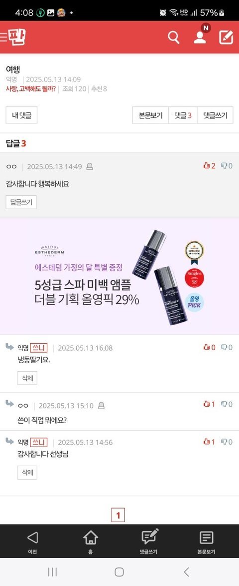 답글 남겼을때 떨떠름했어.