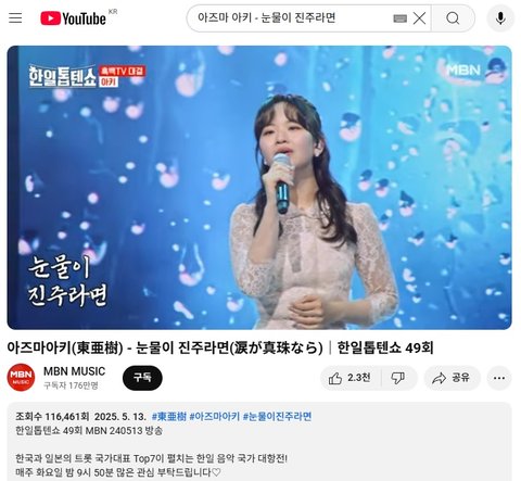 (사진2 설명) 아즈마아키(東亜樹) - 눈물이 진주라면(涙が真珠なら)|한일톱텐쇼 49회