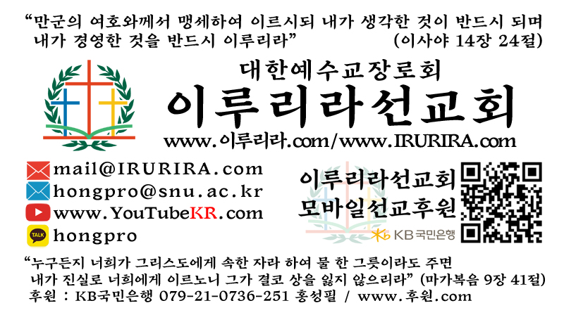 대한예수교장로회 이루리라선교회 : http://www.IRURIRA.com / http://www.이루리라.com