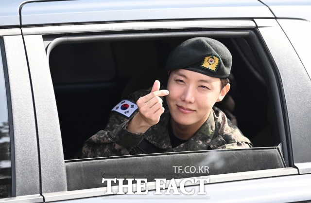 방탄소년단(BTS) 제이홉이 'TMA 베스트 뮤직–봄' 부문 1위에 올랐다. 사진은 지난해 군 복무를 마친 제이홉이 제36보병사단 백호신병교육대대를 나서며 팬들에게 인사하고 있다. /원주=박헌우 기자◇ 방탄소년단(BTS) 제이홉, 'TMA 베스트 뮤직–봄' 부문 1위