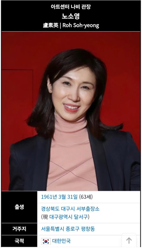 (사진3·4 설명) 노소영(盧素英, Roh Soh-yeong) 아트센터 나비 관장<출처 : NAVER 나무위키>