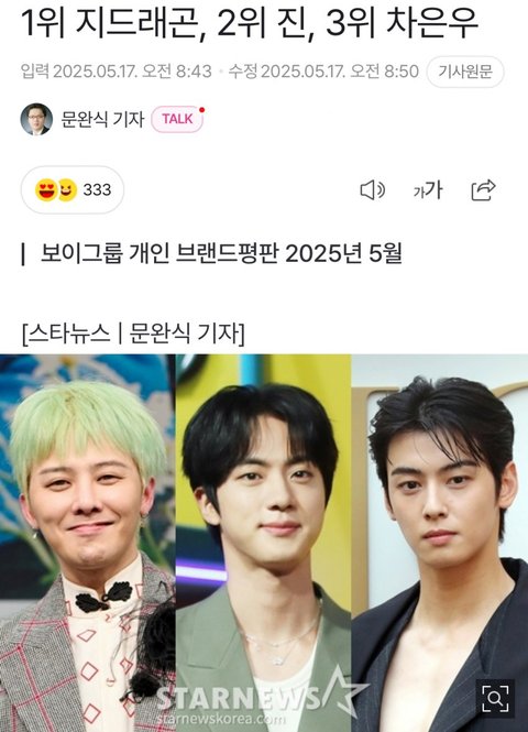 진이랑 차은우도 진짜 본업 잘하고 인성 외모