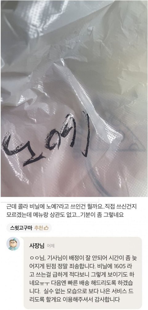 배달음식에 노예라고 써서 보낸 음식점.jpg