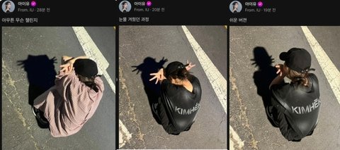 지난 16일 아이유는 소통앱 베리즈에 다양한 버전의 고양이 그림자 챌린지 사진을 올렸다. 그는 “눈물 겨웠던 과정” 이라면서 기뻐하는 팬들에게 “옆구리에 담이 왔다”는 글도 덧붙여 웃음을 안겼다.