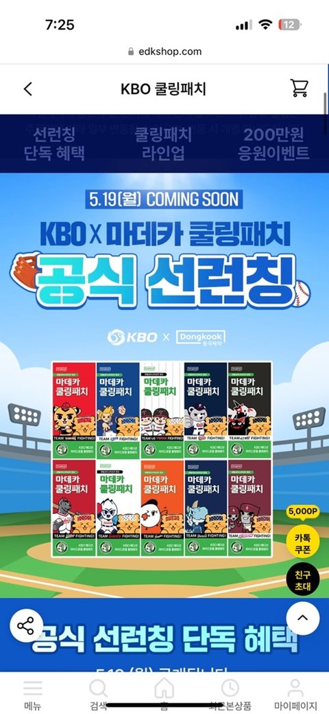 내일부터 KBO쿨링패치 다시 풀리네요