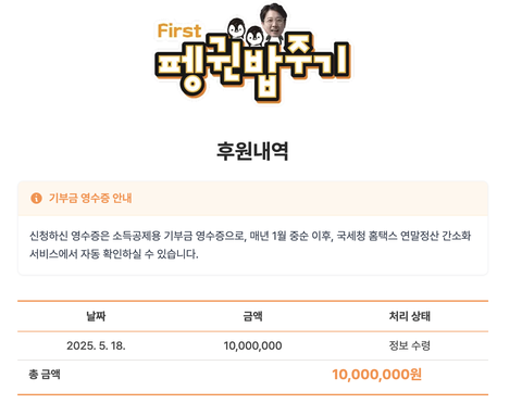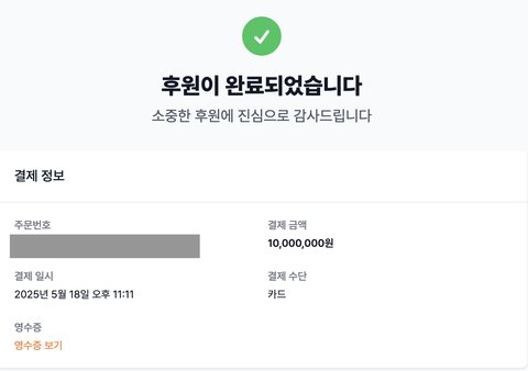 그래서 후원했습니다. 1,000만 원.
