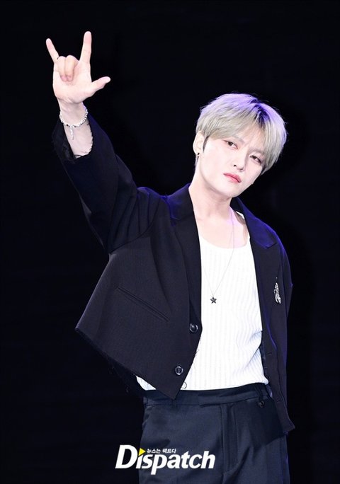 김재중은 화이트 티셔츠와 블랙 재킷, 와이드진으로 깔끔한 스타일링을 연출했다. 조각같은 비주얼과 스윗한 미소도 돋보였다.