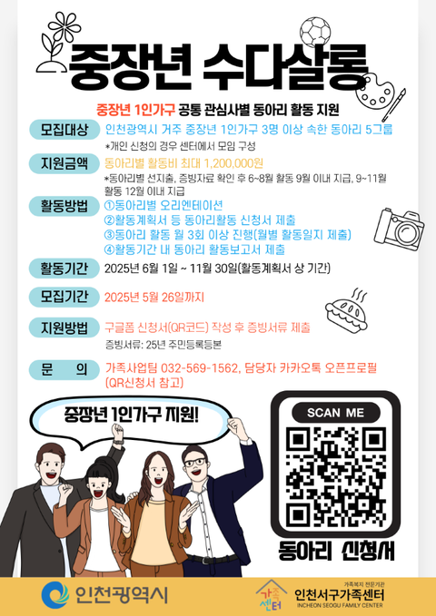 안녕하세요 인천서구가족센터 1인가구 사업 담당자입니다