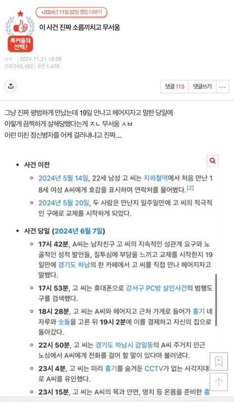 이사건 진짜 졸라무서웠음.. 실제로 내 주변에 저렇게 번따나 sns 통해서 쌩판 모르는 남이랑 연락하면서 친해져서 사귀기까지 하는 애들이 많아서 그런가 뭔가 평범한 만남이 범죄로 이어질 수 있다는 게 너무 소름돋음…