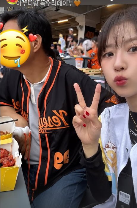 공개된 사진 속 이미주는 아버지와 함께 야구장 데이트에 나선 모습. 부녀는 나란히 앉아 치킨을 먹으며 경기를 관람하고 있다.