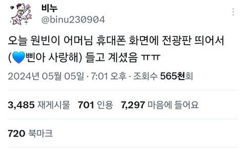 평소 어머님이 빈아~~~ 이렇게 부르신다는데 세상 스윗