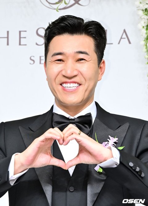 [OSEN=박준형 기자] 가수 김종민은 20일 서울 중구 장충동 신라호텔 영빈관에서 11살 연하 예비 신부와 결혼식을 올린다.예비 신부가 비연예인인 만큼 혼자 포토월에 서는 김종민은 간단한 인터뷰에 응하며 간단한 소감을 전했다. 김종민이 포즈를 취하고 있다. 2025.04.20 / soul1014@osen.co.kr