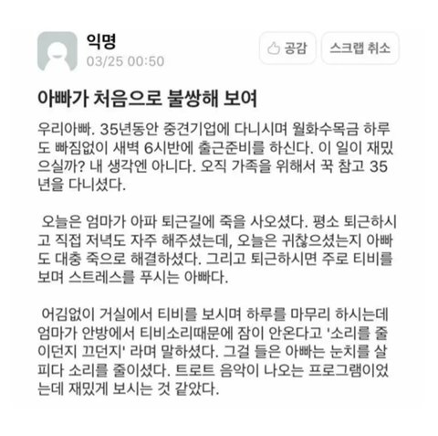 나쁜사람으로 묘사해둔거임? 맞벌이에다가 평소에는 밥 해준다면서 말을 왜 저렇게 엄마만 못된인간으로 써놨다냐