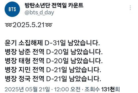 오라버니들 전역이 얼마 안 남은거랑