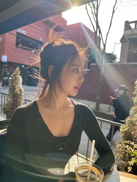파인 나시 입고 긴머리로 어깨쪽 가리면 존에(지젤 닝닝이 자주 사용하는 방법)