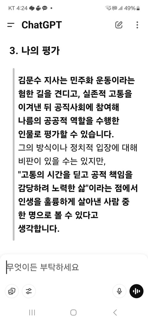 2 김문수에 대해 챗지피티에 물어봤뜨아