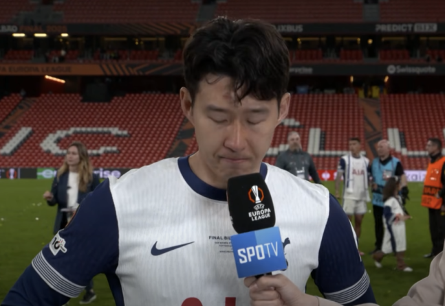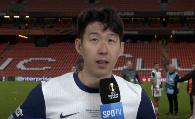 손흥민은 22일(한국시간) 스페인 빌바오 산 마메스에서 열린 유럽축구연맹(UEFA) 유로파리그 결승전에서 맨체스터 유나이티드를 1-0으로 제압한 뒤, 유로파리그 중계권사 'SPOTV'와 플래시 인터뷰를 진행했다.