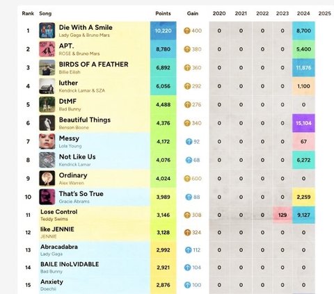 올해 전세계 여가수 발매곡 중에서는 레이디가가 넘고 전체 1위
