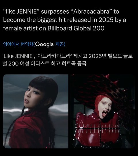 올해 빌보드 글로벌 200 히트곡 랭킹 라잌 제니 벌써 12위