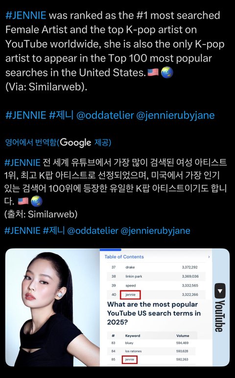 + 올해 k팝 유일 1억뷰 넘은 뮤비가 라잌 제니