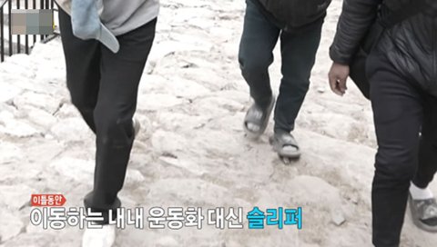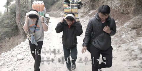 그 험한 산길을 엄청 무거운 짐까지 메고 오르 내리는데 슬리퍼가 웬말이야 ㅠㅠㅠ