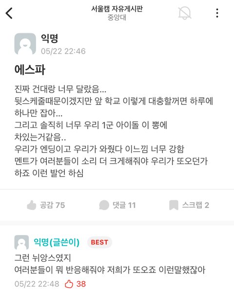 아니 중앙대생인데 에스파 반응 안좋은거 맞음