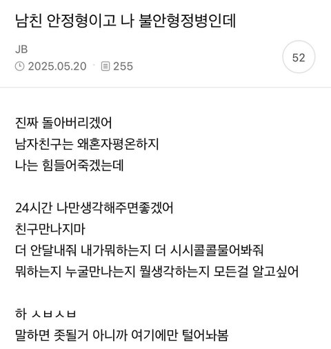 남친 때문에 조카 정신병 걸려서 얘한테 말할까 말까 고민중이라 메모장에 써봤는데 진짜 훨씬 낫다 지금 완전 짤 같은 상황이야.....