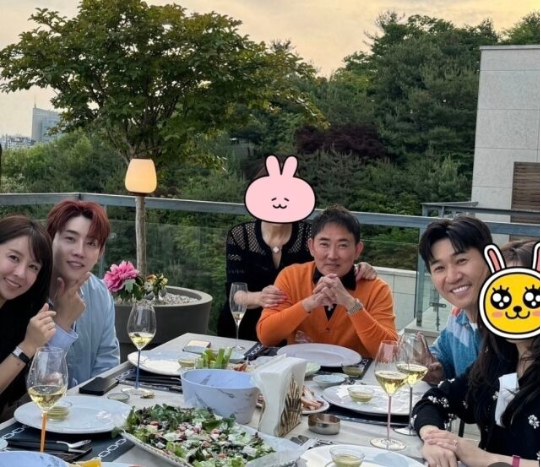 이승철 부부와 김종민 부부, 박현호-은가은 부부까지 ‘신랑수업’ 출연진이 총출동해 눈길을 끌었다.사진=박현호 SNS이번 모임은 ‘부부의 날’을 맞이해 진행된 것으로, 고급 와인잔과 정성스레 차려진 테이블 위 음식들로 멤버들의 남다른 케미를 짐작케 했다. 특히 단체 사진에서 김종민은 수줍은 미소를 지은 채, 얼굴이 모자이크 처리된 아내와 다정히 앉아 있는 모습으로 시선을 사로잡았다. 김종민의 11살 연하 아내는 단아하면서도 세련된 스타일로 눈길을 끌며, 마치 배우를 연상케 하는 분위기를 풍겼다.반면 이승철은 오렌지 컬러의 니트와 클래식한 셔츠를 매치한 스타일로 특유의 여유로운 포스를 드러냈으며, 옆자리 아내와도 자연스러운 스킨십을 보여 부부의 안정감을 자랑했다.